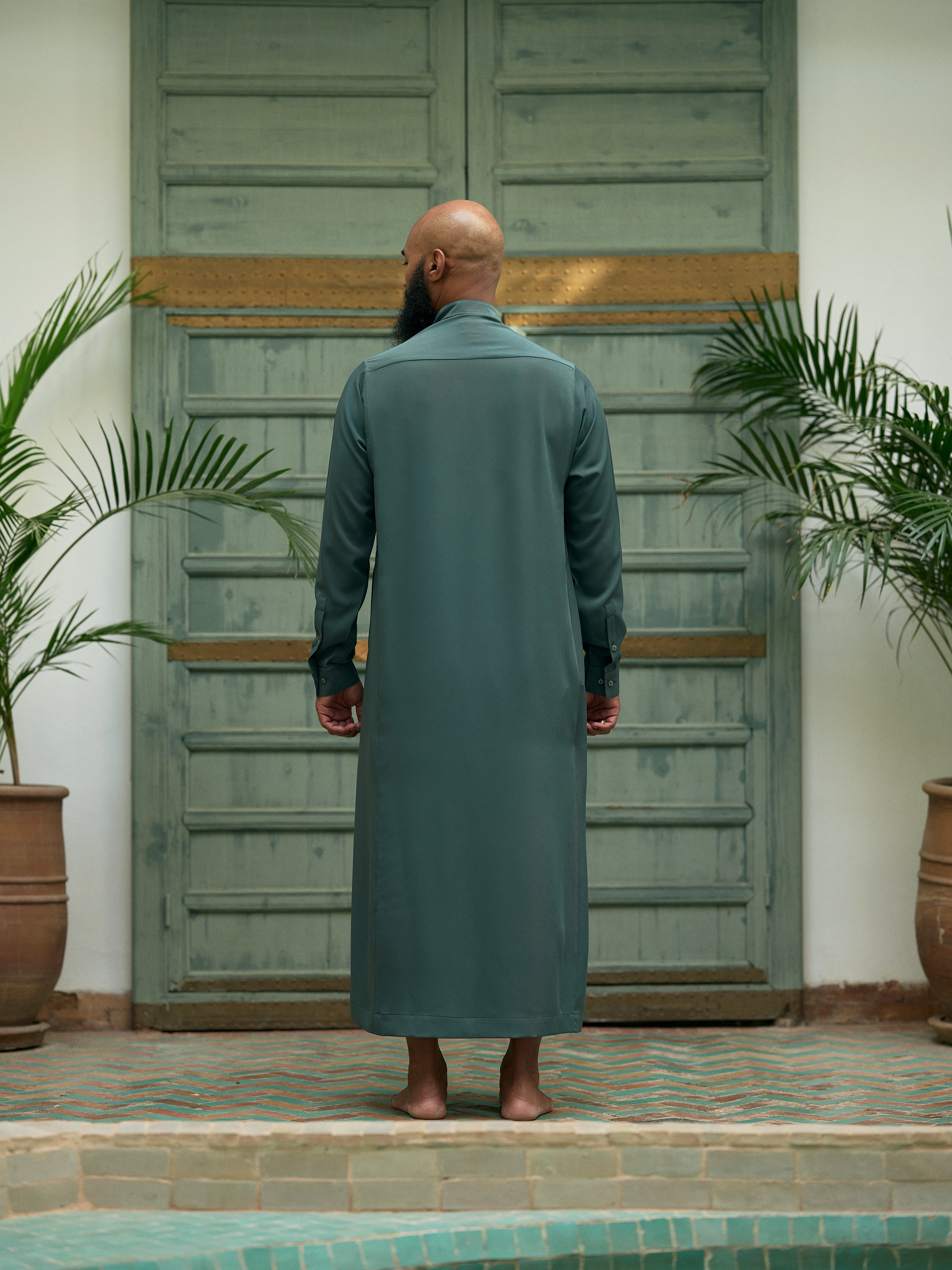 Contrastingly, "The Petroleo Hue" thobe exudes a distinctive allure with its deep and luxurious petrol blue tone, embodying a sense of enigma and refinement. Its timeless fusion of traditional charm and contemporary allure makes it a lasting garment that emanates subtle sophistication.